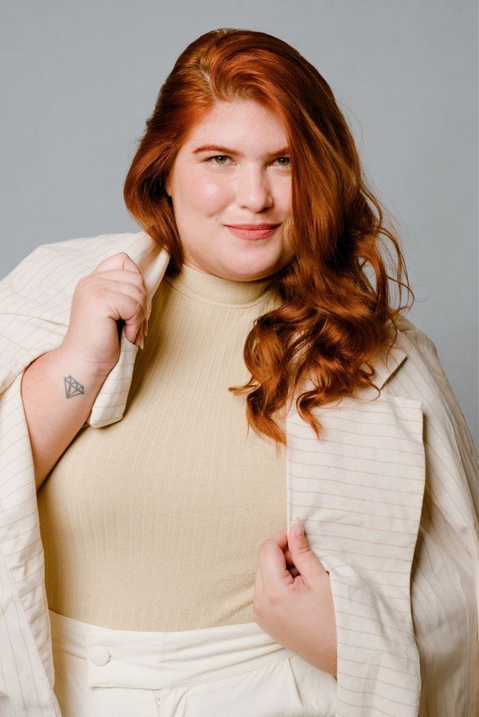 ALTURA 1.65 BUSTO 113cm CINTURA 101cm QUADRIL 135cm OLHOS Castanhos CABELO Ruivo MANEQUIM 50 SAPATOS 37